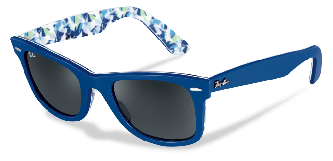 Ray-Ban wayfarer Flouwers; Blauw met bloemen binnenkant. Deze zonnebril is uitgevoerd in een zeer exclusieve en aparte kleur combinatie. De bril is dan ook beperkt leverbaar en zal een ware collectors item worden.